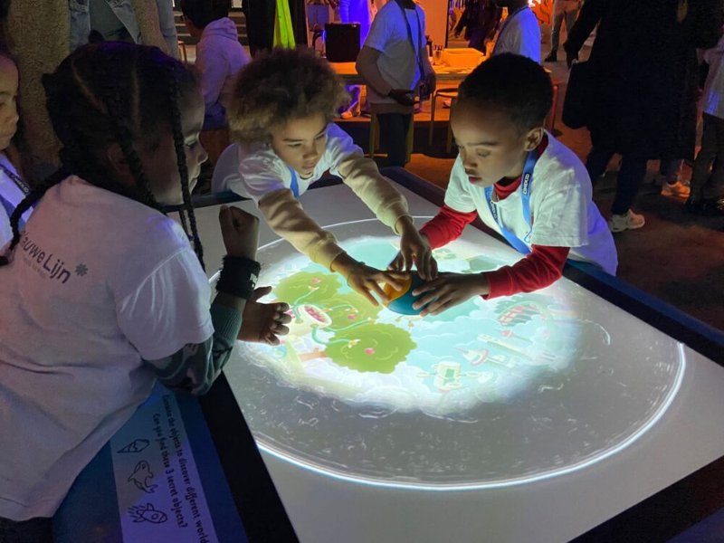 Voor simpele voorwerpen te verplaatsen en samen te voegen, ontdek je een nieuwe, magische wereld vol fantasie. Het is een interactieve tafel die werkt als een toverboek van vroeger. Als je de drie voorwerpen tegen elkaar tikt, spring je zo een ander avontuur binnen. In elke wereld draait het om dromen, toveren en wat echt is of niet. Kun jij de drie geheime dingen vinden? Zoek naar de orka, het ijsje en de raket! Veel plezier!