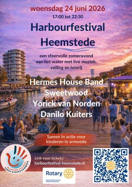 Op woensdag 24 juni verandert de Haven van Heemstede in een bruisend festivalterrein! Geniet van een sfeervolle zomeravond aan het water, met live muziek, gezelligheid en bijzondere momenten. Met het Harbourfestival halen de Heemsteedse Rotarians geld op voor HATKA. Wij zijn daar heel blij mee een gaan zeker naar het festival!