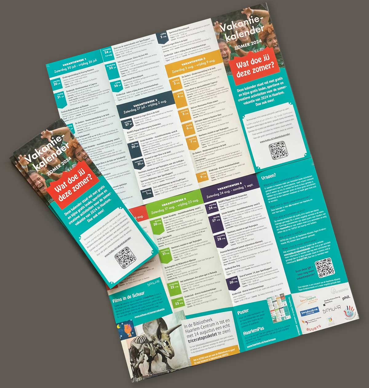 Heden middag is de HATKA Vakantiekalender 2024 van de pers gerold. Het betreft een oplagen van maar liefst 10.000 exemplaren! De kalender, die ieder jaar groter en uitgebreider wordt, staat boordelvol tips en activiteiten voor kinderen van ouders met beperkte middelen. Zo heeft iedereen wat leuks te doen in de vakantie! De kalender zal breed verspreid worden door onze partner SportSupport en hij zal actueel blijven met het online aanbod van de Vakantiekalender.